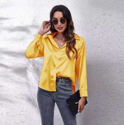 The Satin Blouse Shirt Silk Tops are as practical as they are beautiful. Silk is a durable fabric that retains its luxurious sheen and smooth texture over time with proper care. This blouse is easy to maintain, ensuring it remains a staple in your wardrobe for years to come. Its versatile design makes it suitable for a wide range of occasions—pair it with casual or formal outfits to elevate your style effortlessly.